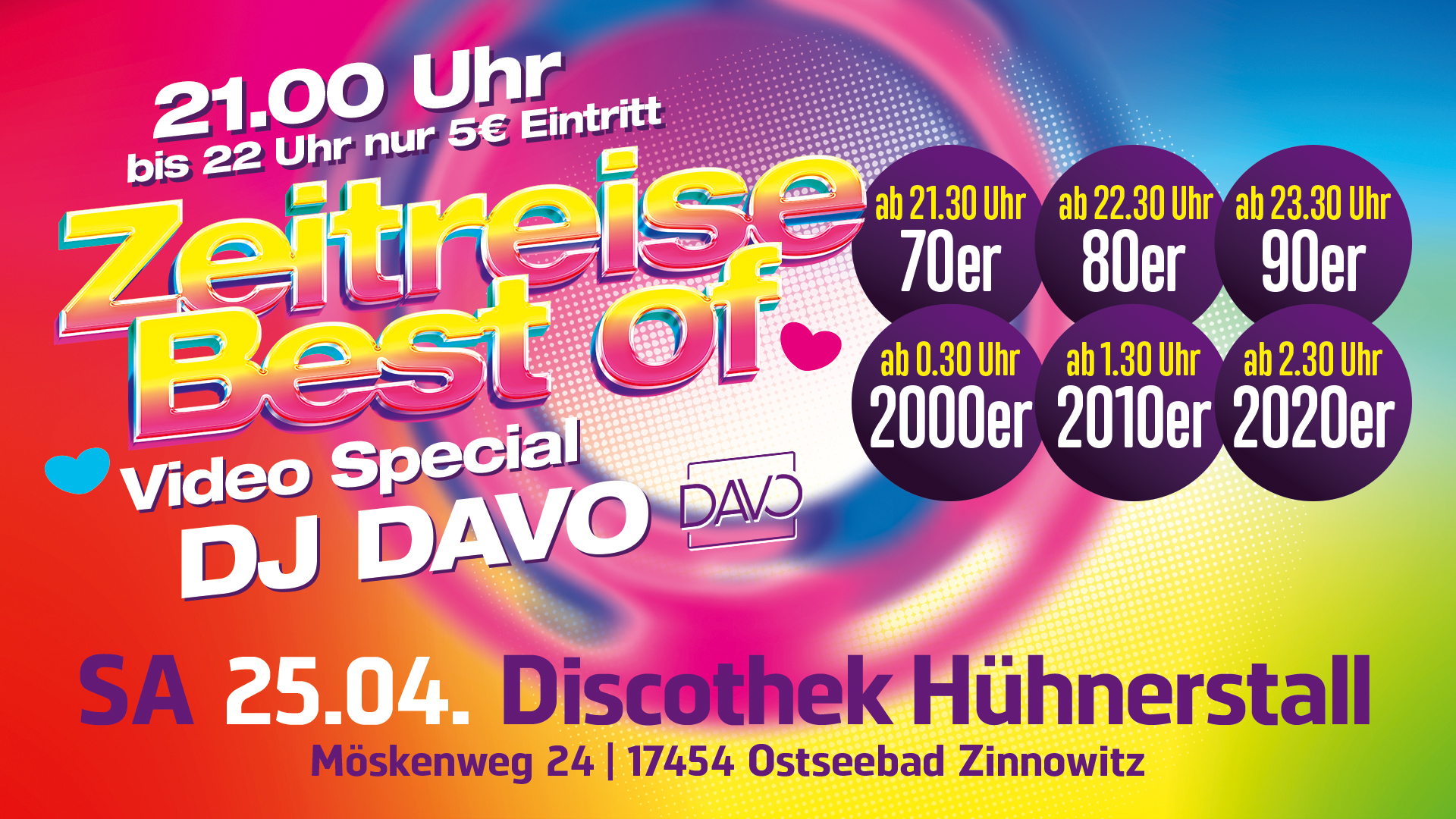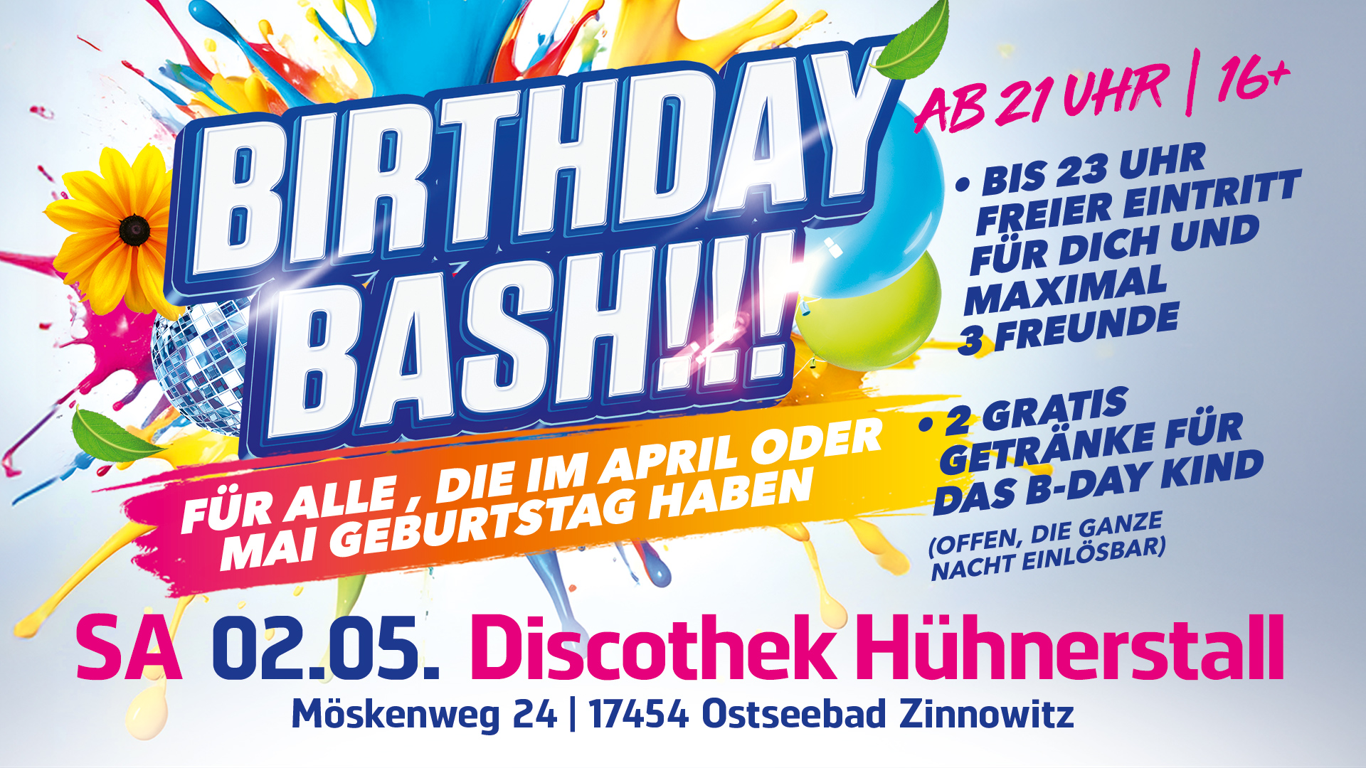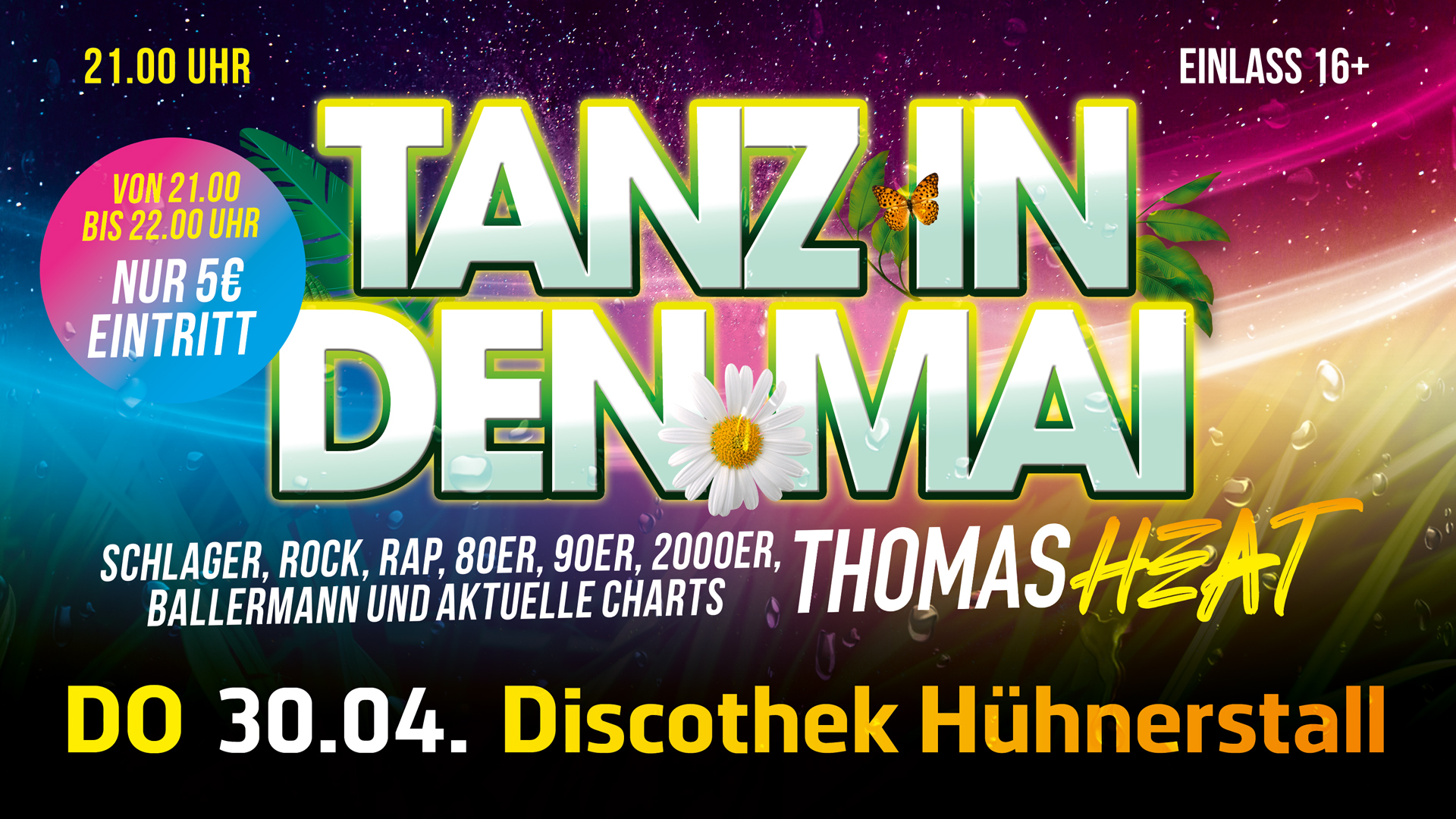 18.04.2026 Ü 30 Party – Generation 25+ feiert Start um 21:00 Uhr - Ende 05:00 Uhr Mehr zur Ü 30 Party – Generation 25+ feiert 25.04.2026 Zeitreise-Best of….. Start um 21:00 Uhr - Ende 04:00 Uhr Mehr zur Zeitreise-Best of….. 30.04.2026 Tanz in den Mai Start um 21:00 Uhr - Ende 04:00 Uhr Mehr zur Tanz in den Mai 02.05.2026 Birthday Bash Start um 21:00 Uhr - Ende 04:00 Uhr Mehr zur Birthday Bash